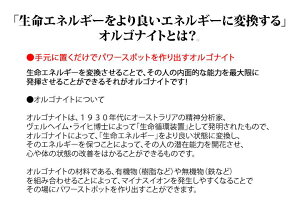 オルゴナイトの材料である、有機物(樹脂など)や無機物(鉄など) を組み合わせることによって、マイナスイオンを発生しやすくなることで その場にパワーストポットを作り出すことができます。